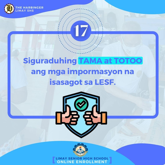 Sa tulong at kumpirmasyon ng Tanggapan ng Registrar ng Limay Senior High School, narito ang gabay sa pagsagot ng Learner Enrollment and Survey Form (LESF), isa sa mga hakbang sa online enrollment para sa Taong Panuruan 2021-2022.